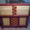 Now before I go, you did mention criticism. This is something I don’t usually give until requested. Nothing worse than unsolicited criticism! But please keep in mind this is just my opinion. I will start by saying there is indeed such a thing as “too much of a good thing”. The piece you’ve created is amazing in both design and proportion. Very well executed. What I am concerned about is that it is a little too “busy”. Those checker boards are fantastic. But with a purpleheart frame and with so many panels, it can be difficult on the eyes. When selecting wood grains and colors, I like to try to balance things out. If I have a simple frame of maple, I like the idea of a busier panel. By busy, I mean something with good color or lots of figure, or possibly something like what you’ve done here with the checkerboard. And if I have a busy or colorful frame, I would lean toward simplicity in the panels using only one color wood with a little to no figure. Now you’ve already gone through all the work of creating those amazing checkerboard panels, so please feel free to throw this advice right out the window. But its something to keep in mind in the future.