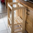 So clearly, we embrace his presence in the kitchen. To that end, he usually uses either a step-stool or a chair to do his work. Unfortunately, the stool is too short, the chair is too tall, and neither of them proves to be conducive to longer cooking sessions. So I set out to design a kids step-stool that includes features like safety elements, height adjustability, custom-sizing for kitchen countertops, and a nice wide platform. I looked around at some of the commercial designs for inspiration and really didn’t like what I saw. Most of them were fairly unattractive plywood structures that looked more at home in a Gymboree than in a kitchen. Since we have to look at this thing every day, I decided it must also be attractive. So a stylish appearance was the final feature I included. The end result is the Kids Kitchen Step Stool with some Arts & Crafts flair.